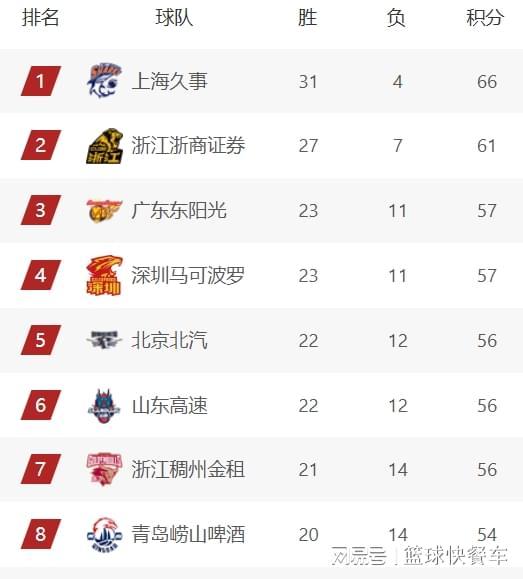附:CBA积分榜最新排名