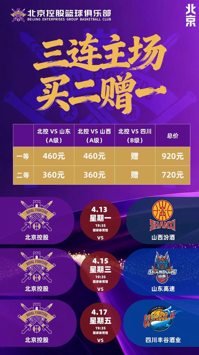 【票务公告】买赠福利翻倍!常规赛最后一次三场联售今日12:18开启!