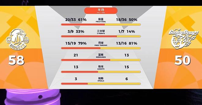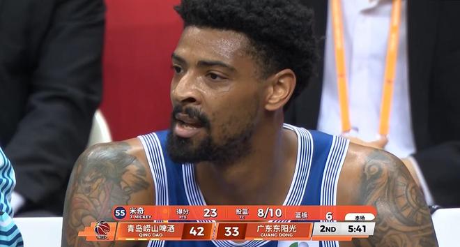 米奇一人打爆广东内线,14分钟内已砍下23分6板2抢断3帽,带领青岛建立10分领先;