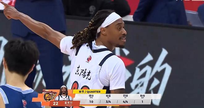 节中米奇下场充电,麦考尔王洪泽发力连得10分,广东队一波12-4将分差缩小到4分,关键时刻米奇回归联手韦瑟斯庞送出2记2+1,麦考尔反击暴扣,急停中投连得4分给出回应,这一节麦考尔终于打出了人样,虽然没有三分,但突破造杀伤效果不错,单节砍下12分。